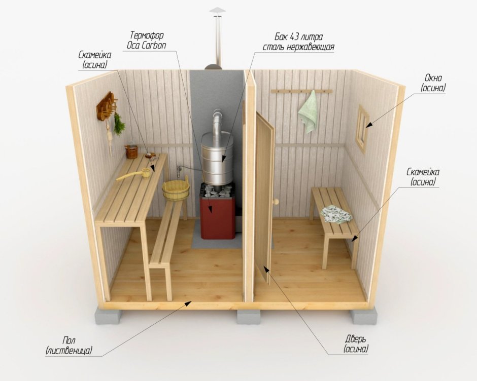Конструкция каркасной бани представляет собой легкую и прочную основу из деревянных брусков или металлических профилей. Это позволяет быстро и без особых хлопот установить баню на любом участке земли или даже на террасе вашего дома.