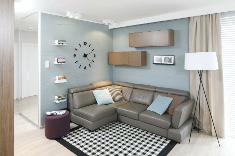 Интерьер комнаты с угловым диваном