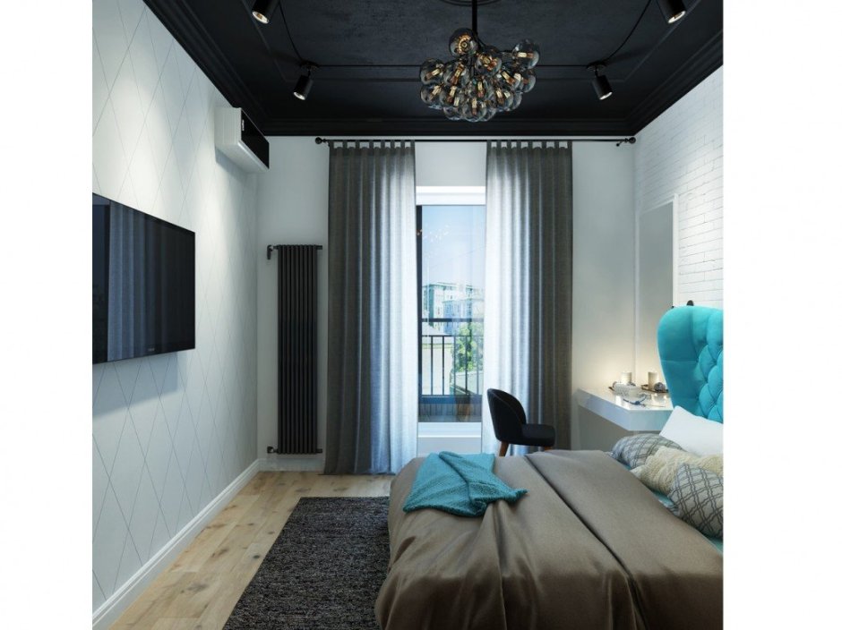 Спальня с черным потолком