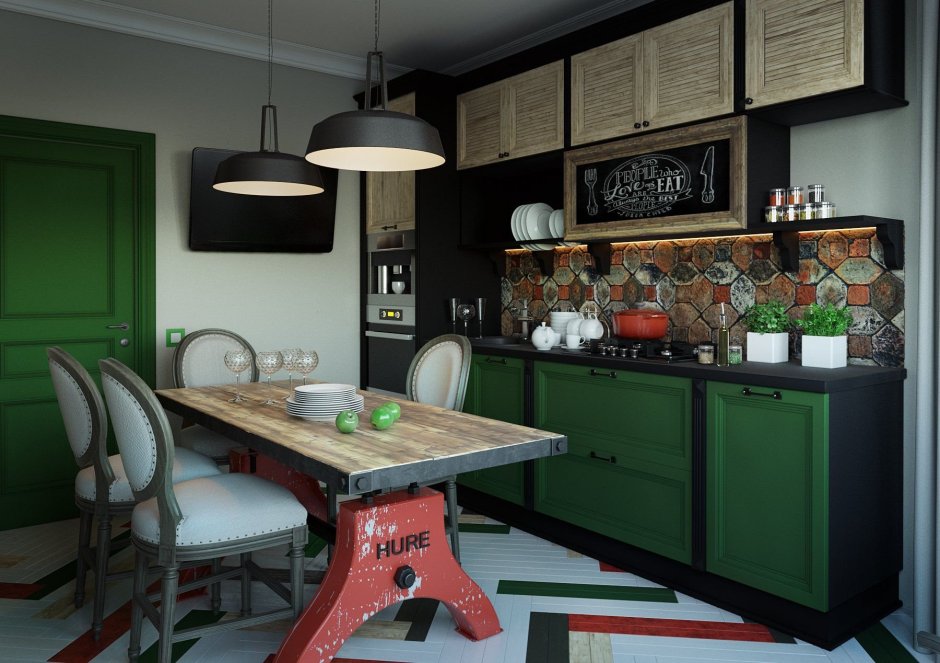 Зеленый цвет является символом жизни и гармонии. Он создает атмосферу комфорта и спокойствия, что особенно важно для кухни, где мы проводим много времени. Комбинирование зеленого цвета с элементами лофт стиля придает интерьеру особую изюминку и энергетику.