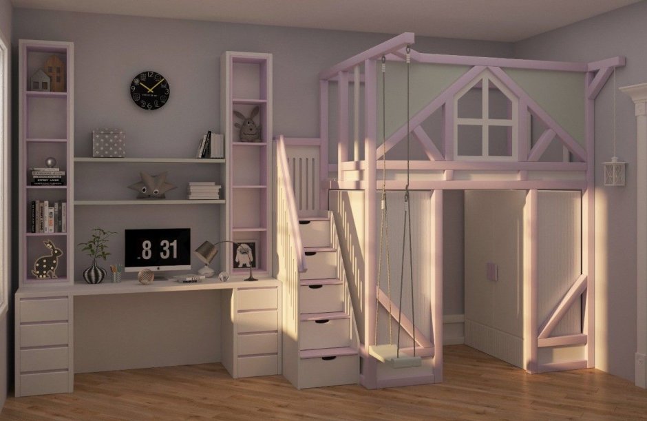 Детские уголки с кроватью внизу и шкафом для 3 летней девочки