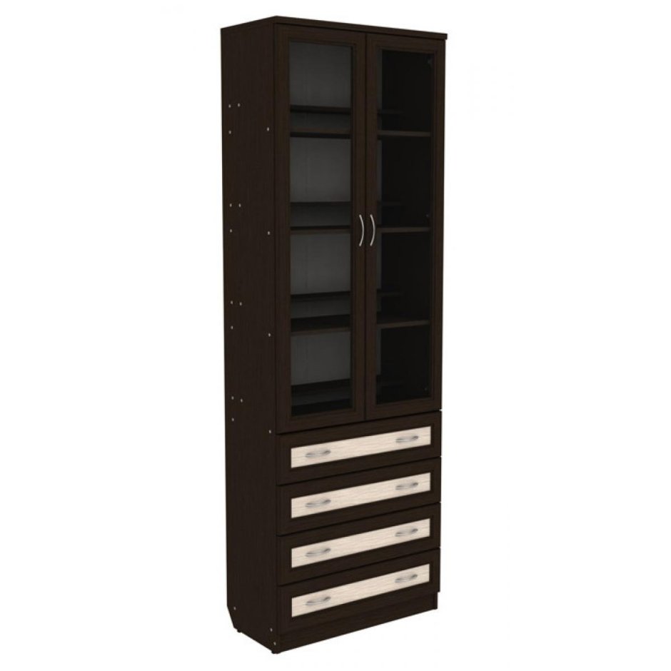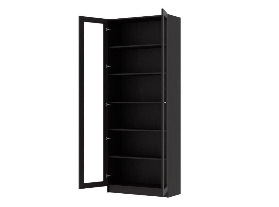 Шкаф обладает прочной конструкцией и высоким качеством материалов, что обеспечивает долговечность и надёжность использования. Каждая полка внутри шкафа имеет достаточно места, чтобы разместить большое количество книг или декоративных элементов. Двери шкафа могут быть стеклянными или деревянными, в зависимости от вашего предпочтения.