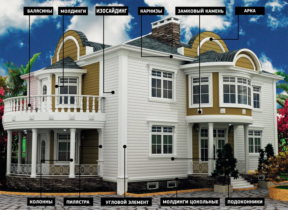 Фасадные элементы из пенополистирола доступны в широком ассортименте форм и текстур, что позволяет создавать самые разнообразные архитектурные решения. Они могут имитировать натуральные материалы, такие как камень, кирпич или дерево, придавая зданию уникальный и изысканный вид. Также возможна окраска фасадных элементов в любой цвет, что дает еще больше возможностей для реализации креативных идей.