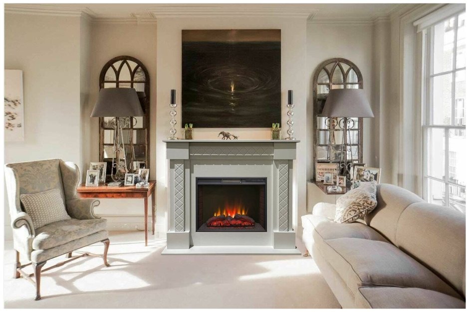 Камин с зеркалом в интерьере