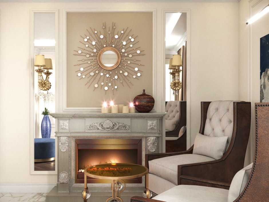 Камин с круглым зеркалом