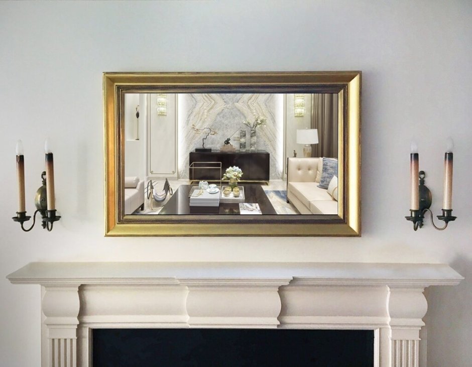 Зеркало в багете над камином