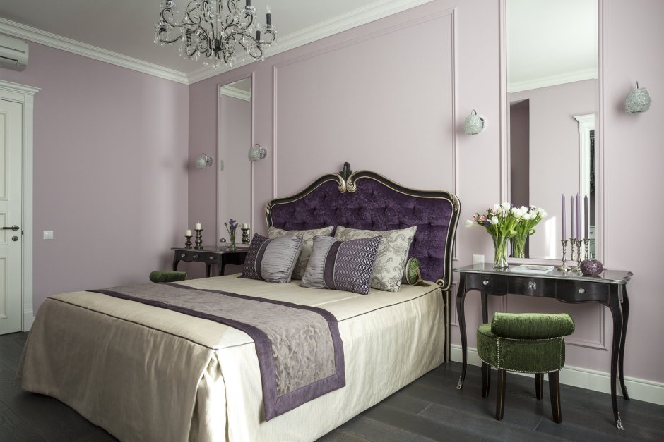 Светло сиреневые стены идеально сочетаются с различными элементами декора. Например, мебелью в пастельных тонах или белоснежными акцентами. Такое сочетание создает гармоничный и стильный образ, придающий помещению легкость и воздушность.