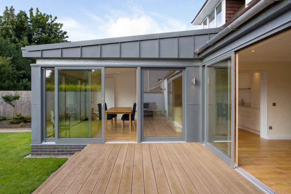 Уютная и стильная веранда с раздвижными окнами до пола - прекрасное решение для любителей комфорта и эстетики. Этот элемент дизайна добавит свежести и уникальности вашему дому, а также позволит наслаждаться красотой природы в любое время года.