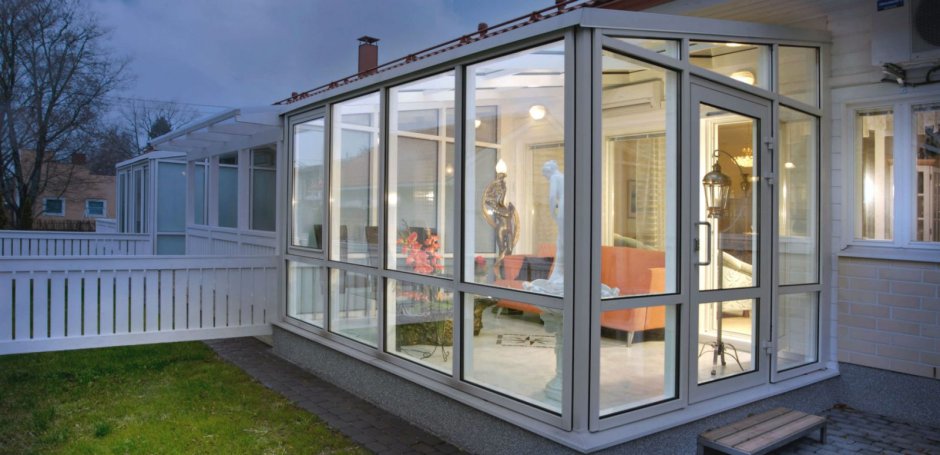 Веранда с раздвижными окнами до пола предлагает возможность насладиться свежим воздухом и красивыми пейзажами, не выходя из дома. Вы можете открыть окна, чтобы почувствовать легкий бриз или насладиться звуками природы. А в холодное время года можно закрыть окна и наслаждаться теплом и уютом, не теряя контакта с окружающим миром.