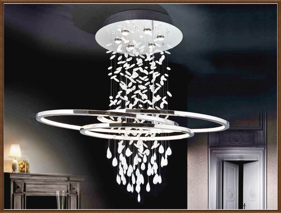 Эта люстра становится центром внимания, словно звезда, выделяющаяся своим шикарным обликом. Длинные подвески, выполненные из хрусталя или других прозрачных материалов, улавливают и отражают свет, создавая множество игр теней и бликов. Они словно падают с потолка, создавая впечатление невесомости и легкости.