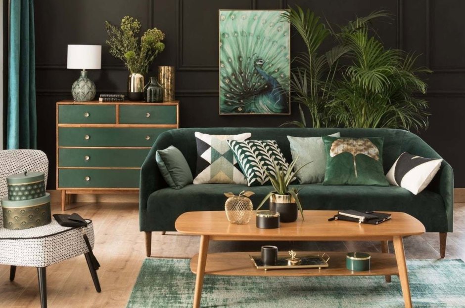 Гостиная в изумрудных тонах