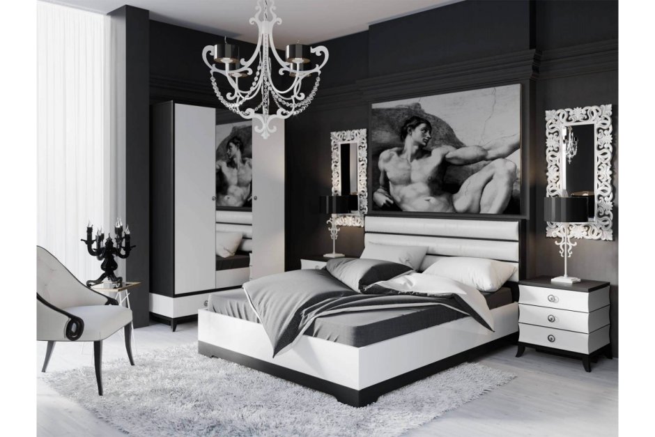 Начнем с кровати – она является главным акцентом спальной комнаты. Стильная и функциональная модель сочетает в себе лаконичность и элегантность. Основание может быть выполнено из натурального дерева или кожи, что добавит шарма и роскоши. Высокая спинка кровати обеспечивает комфортное положение тела во время чтения или просмотра фильмов.