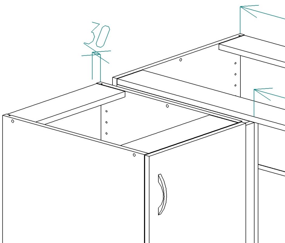 Схема сборки углового шкафа под мойку для кухни