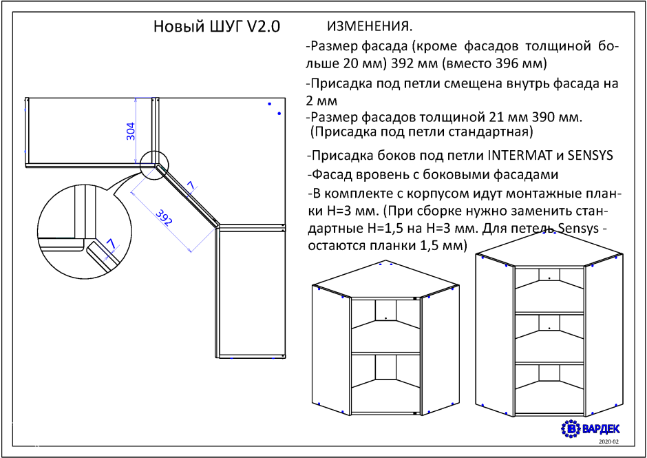 Схема сборки для навесного углового кухонного шкафа