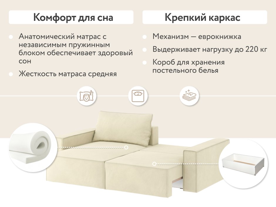 Молочный оттенок дивана придает ему особую изысканность и шарм. Он подходит для разных стилей интерьера, будь то классика, скандинавский минимализм или современная мода. Цвет молока символизирует чистоту, гармонию и нежность, создавая приятное впечатление и привлекая к себе взгляды.