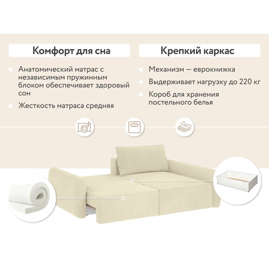Таким образом, угловой диван в молочном оттенке – это отличный выбор для тех, кто ценит элегантность, функциональность и комфорт. Его нежный цвет и изысканный дизайн прекрасно дополнят любое помещение, создавая атмосферу уюта и гармонии. Позвольте себе окунуться в мир роскоши и комфорта с угловым диваном в молочном оттенке.