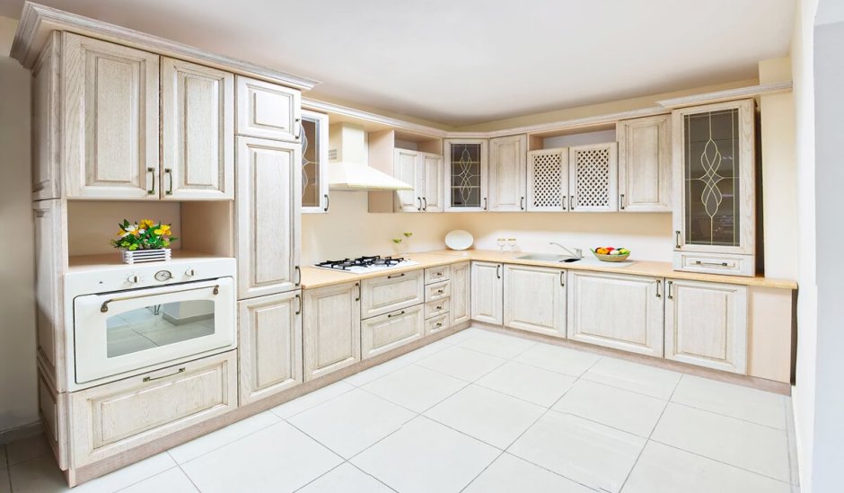 Кухни классика светлые угловые