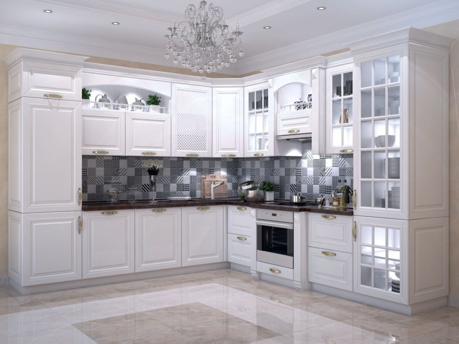 Кухня угловая белая классика