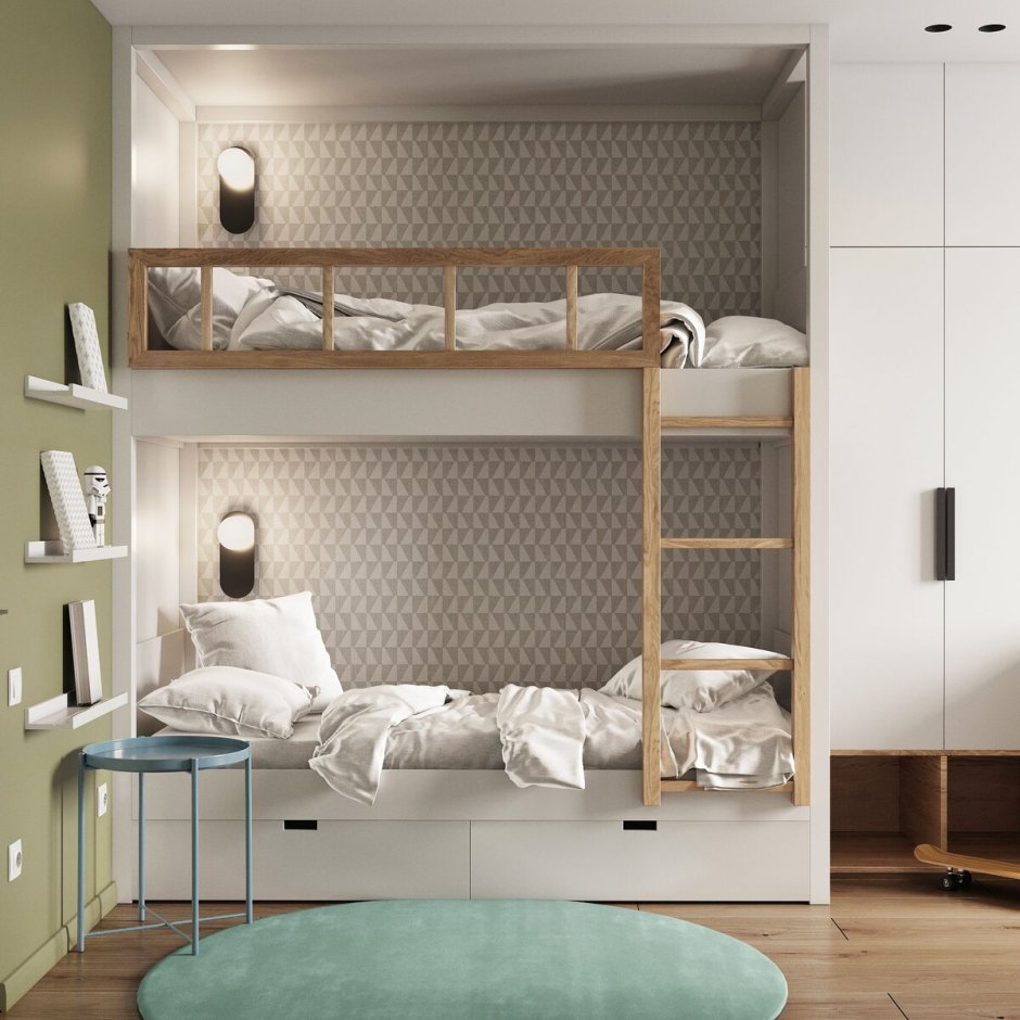 Дизайн комнаты с двухъярусной кроватью