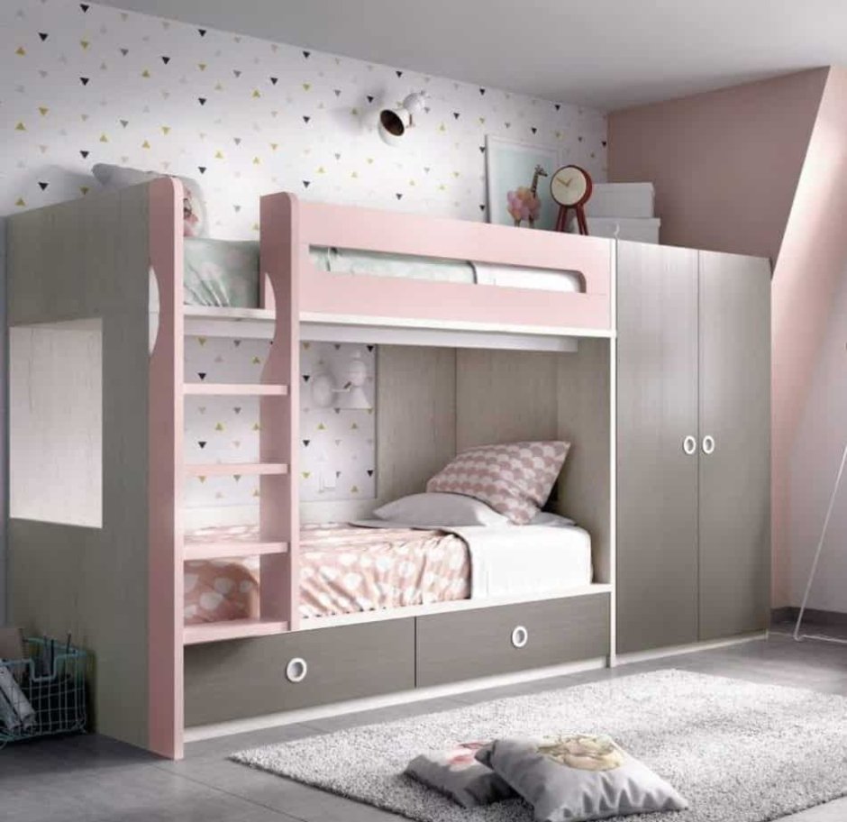 Детская комната для девочек с двухъярусной кроватью