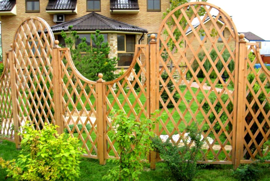 Сочетание натуральных материалов, таких как дерево или металл, с изящными формами и простыми геометрическими линиями делает трельяж настоящим произведением искусства. Он может быть использован как опора для плетения лиан, цветущих кустарников или вьющихся растений, создавая феерическую атмосферу вокруг.