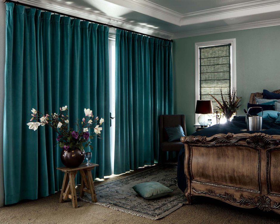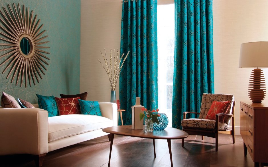 Темно бирюзовые шторы отлично сочетаются с разными цветами интерьера. Они могут быть удачным дополнением к светлым оттенкам, таким как белый, бежевый или серый, добавляя яркости и жизненной энергии в комнату. Также они прекрасно сочетаются с другими насыщенными цветами, создавая контраст и глубину.