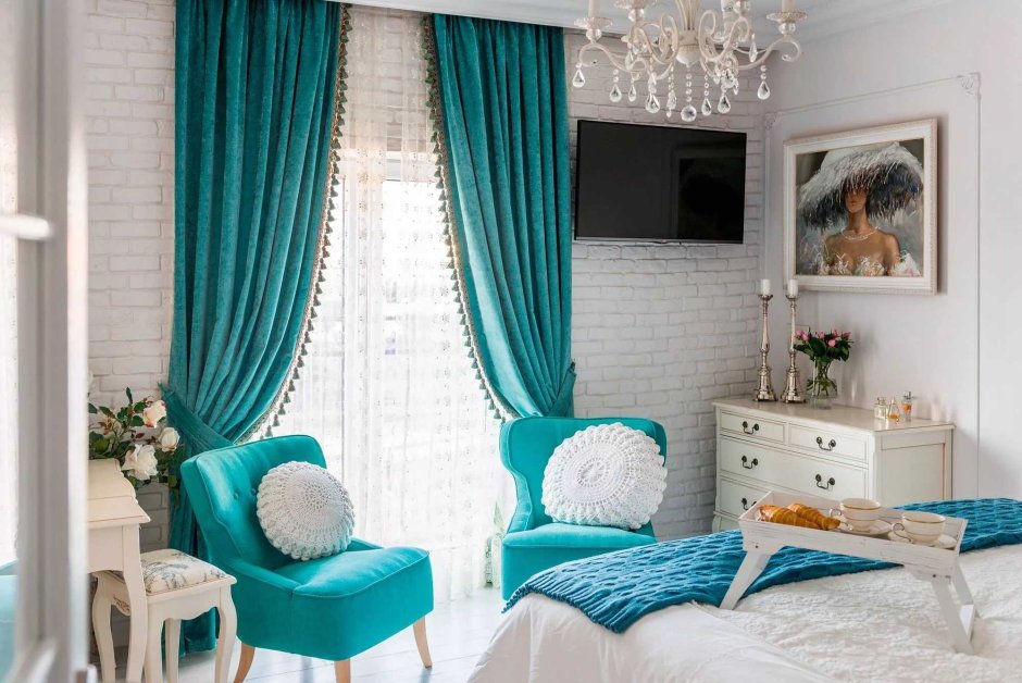 Кроме того, темно бирюзовые шторы могут быть использованы для создания акцентных точек в интерьере. Этот цвет привлекает внимание и может стать главным акцентом в комнате, привнося элегантность и роскошь в дизайн.