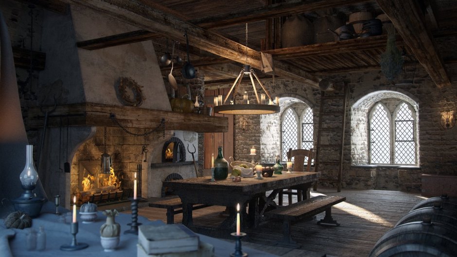 Этот стиль интерьера характеризуется тяжелыми деревянными мебелью, грубыми каменными стенами, массивными металлическими элементами и узорчатыми текстильными предметами. Фокус средневекового дизайна лежит на деталях, которые придают комнате уникальность и индивидуальность.