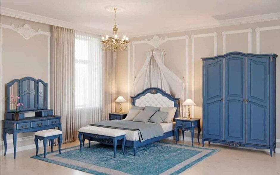 Кроме того, синий цвет гарнитура создает атмосферу спокойствия и релаксации, что является идеальным для спальни. Он ассоциируется с мирной ночью и безмятежностью, помогая вам расслабиться после долгого дня и получить качественный отдых.
