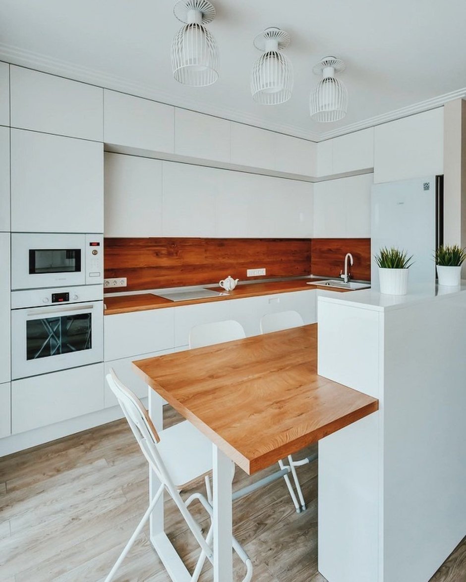 Кухня белая с деревом в интерьере