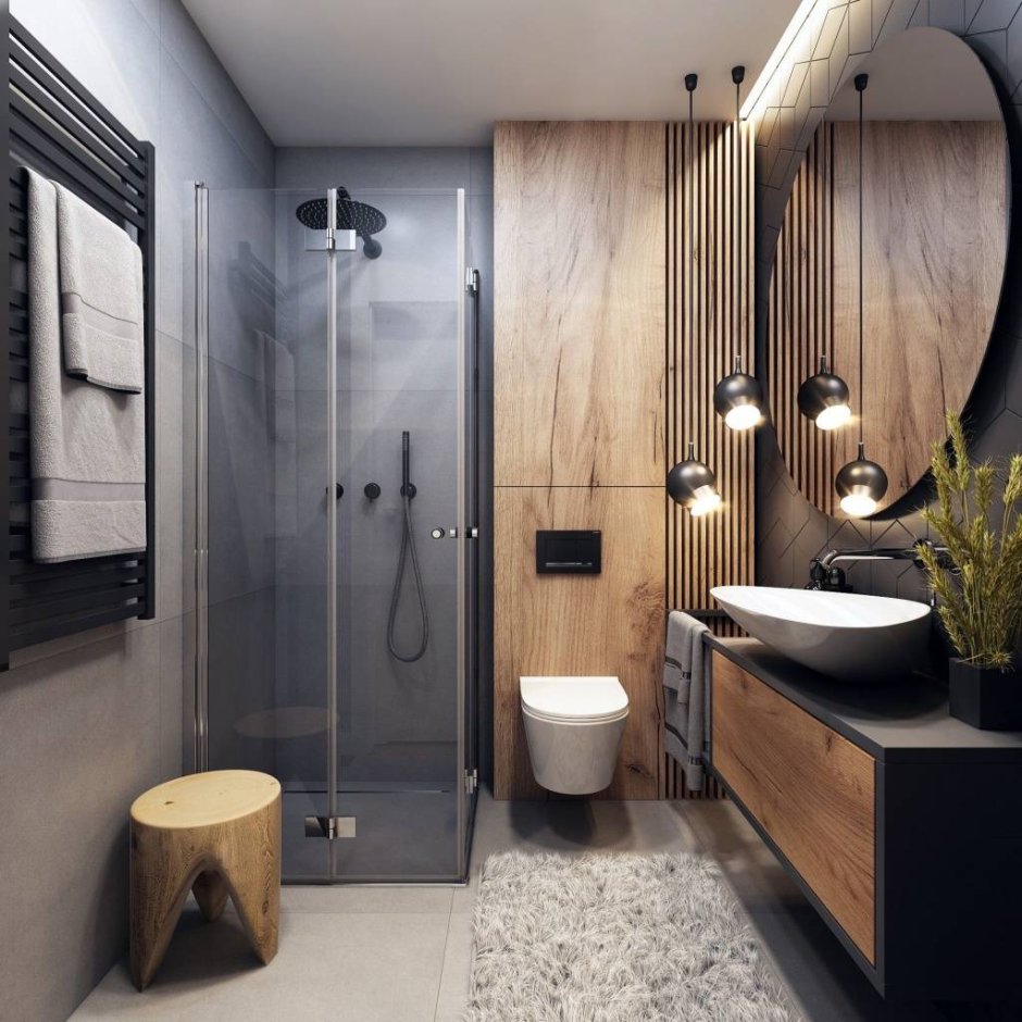 Для придания интерьеру санузла с душевой в современном стиле финальных штрихов, можно использовать различные аксессуары. Например, зеркала с подсветкой, полотенцесушители с оригинальным дизайном, а также декоративные элементы, такие как камни или растения.