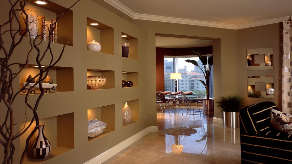 Ниши можно оформить разнообразными способами: добавить встроенное освещение, украсить стеклом или зеркалом, использовать живописные обои или красивую керамическую плитку. Кроме того, вы можете экспериментировать с геометрией ниши - создавая необычные формы и контуры, вы сможете придать интерьеру динамичность и интригу.