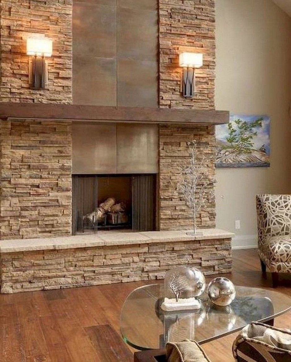 Отделка камина декоративным камнем