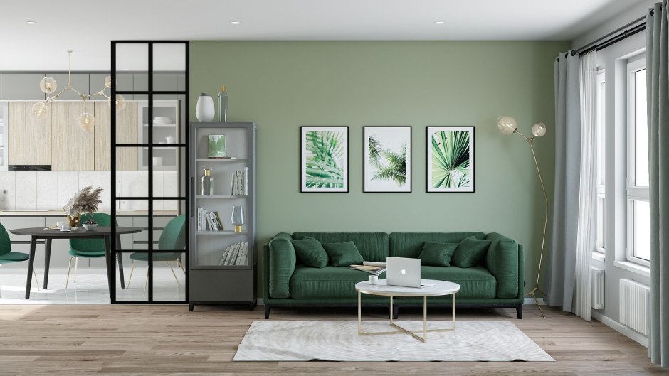 Гостиная в зеленых тонах