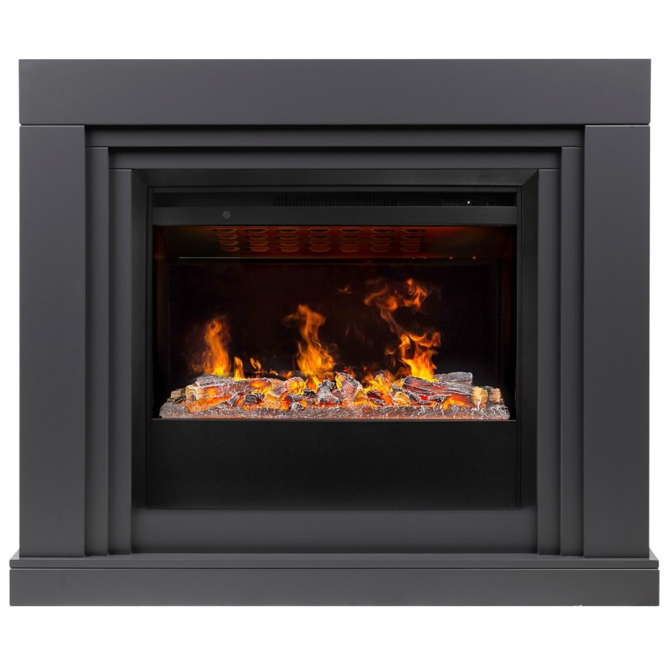 AMBERGLO Grey Wall Mounted Electric Fireplace Suite with log & Pebble fuel Bed
