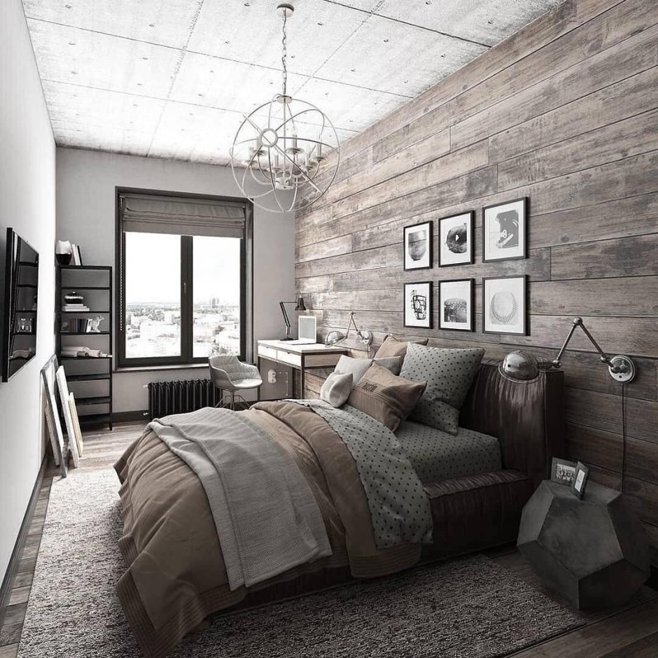 Спальня в стиле лофт 12 кв м