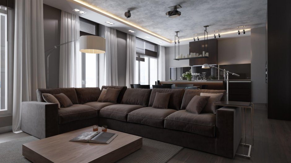 Интерьер в коричнево серых тонах