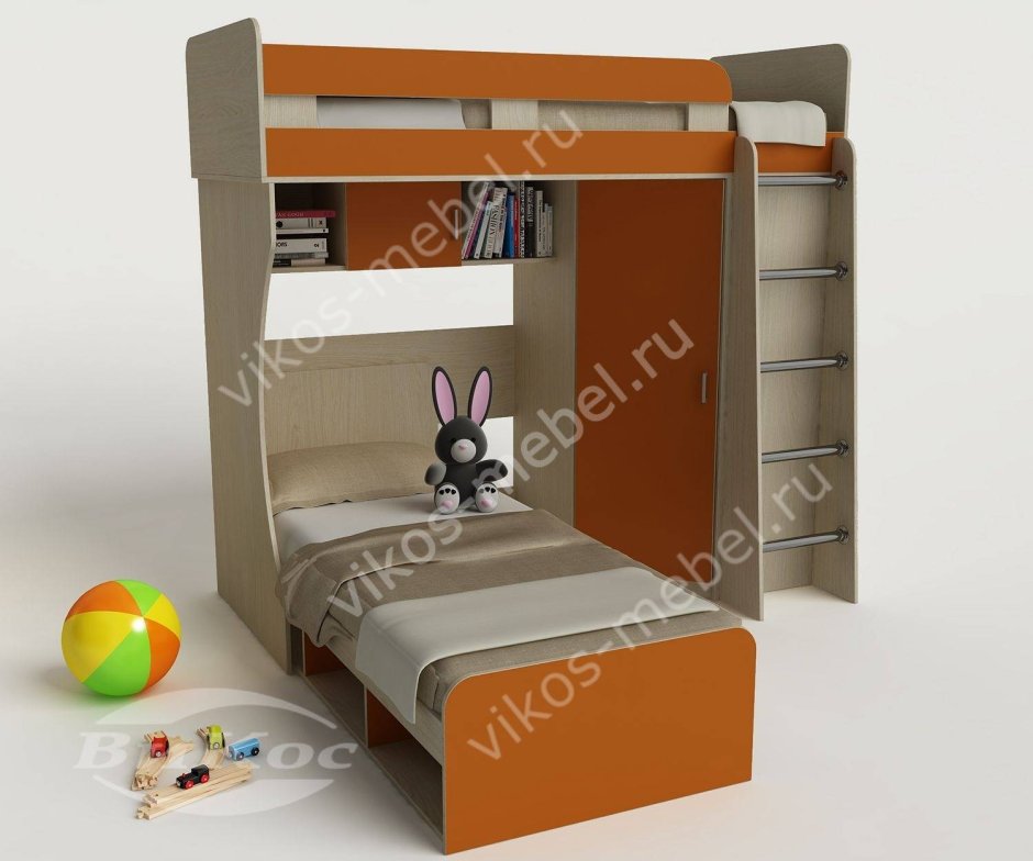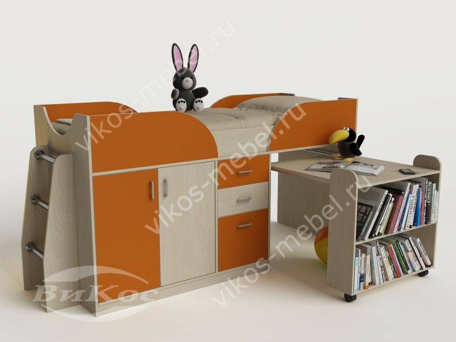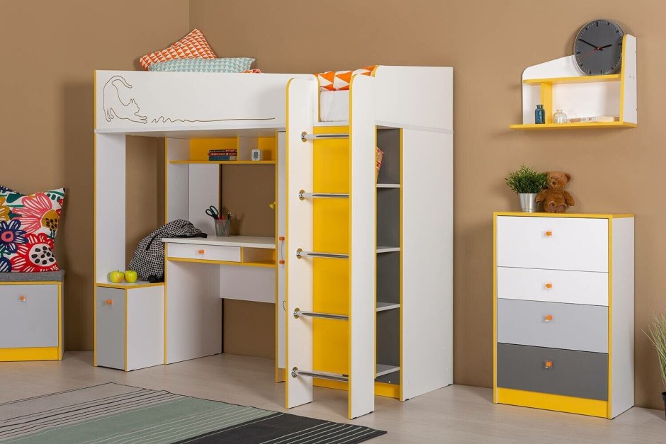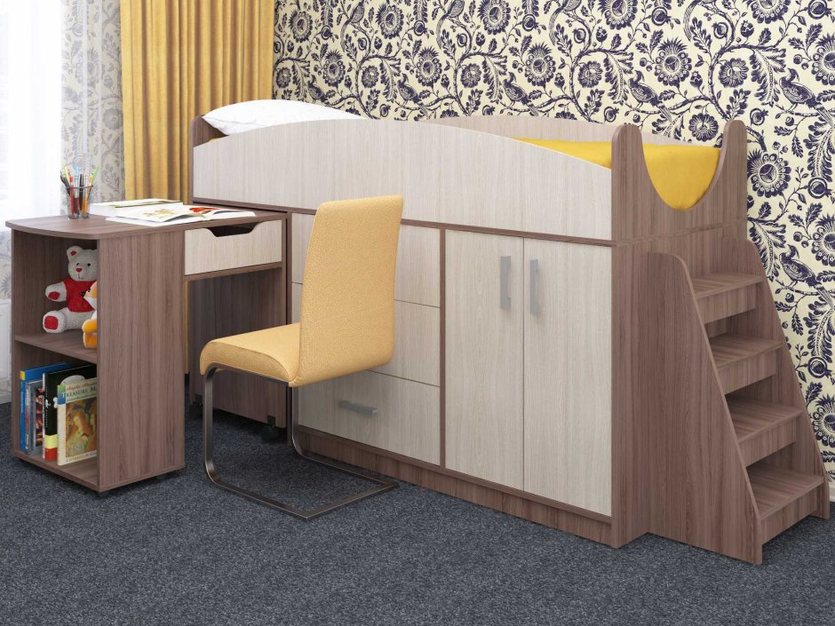 Кровать "Карлсон" выполнена из высококачественных материалов, обеспечивающих прочность и долговечность. Ее элегантный дизайн включает в себя два уровня - верхний и нижний. Верхняя часть кровати может служить спальным местом, а нижняя - рабочей зоной или игровой площадкой, в зависимости от потребностей ребенка.