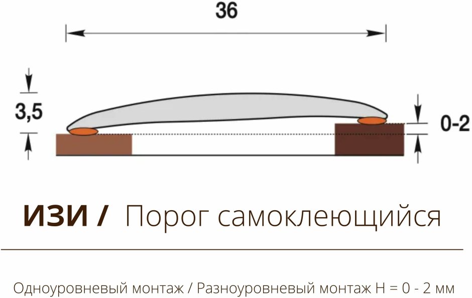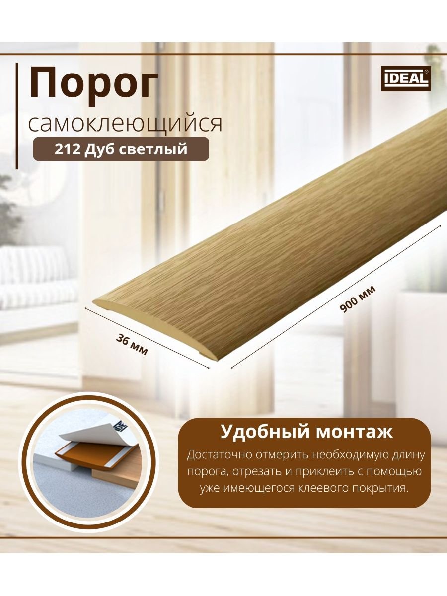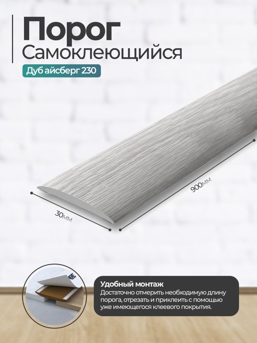 Этот порог имеет самоклеющуюся основу, что позволяет без труда закрепить его на любой чистой и ровной поверхности. Это означает, что вы не нуждаетесь в дополнительных инструментах или специальных навыках для его монтажа. Просто удалите защитную пленку с основы порога и прижмите его к полу – и все, переходная зона готова!