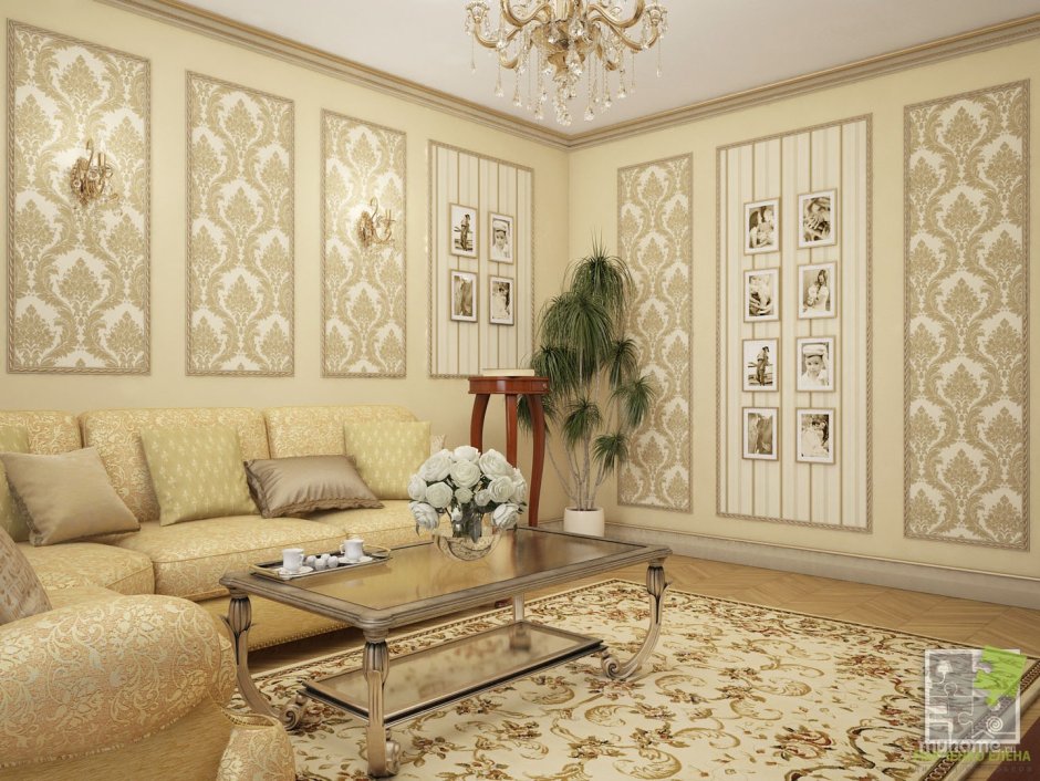 Обои для гостиной в классическом стиле