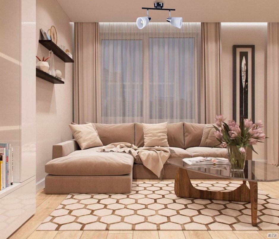 Гостиная в бежевых тонах