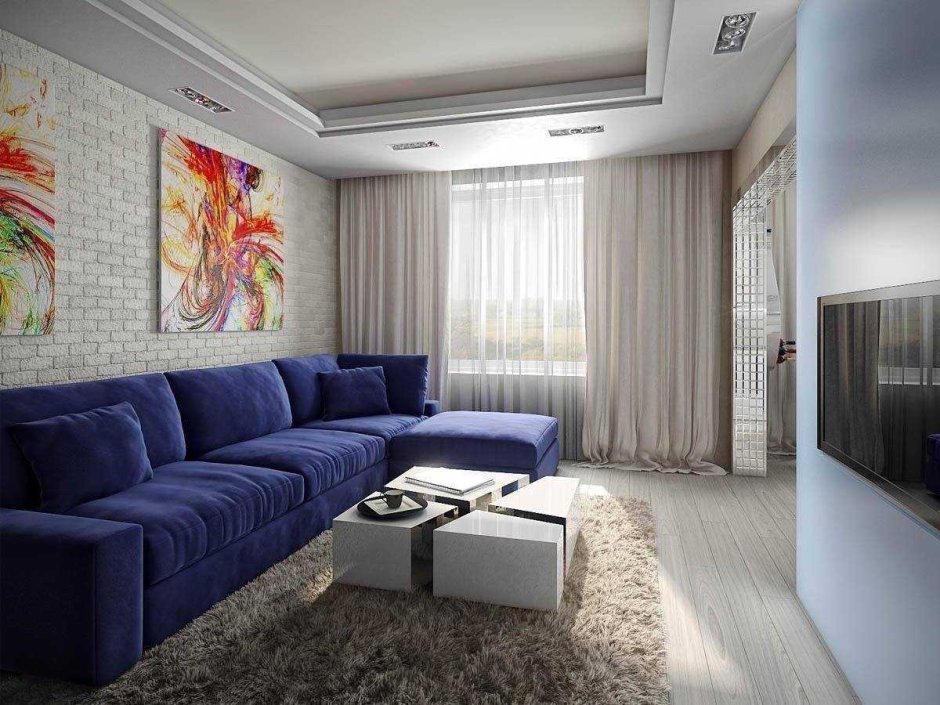 Планировка гостиной с угловым диваном