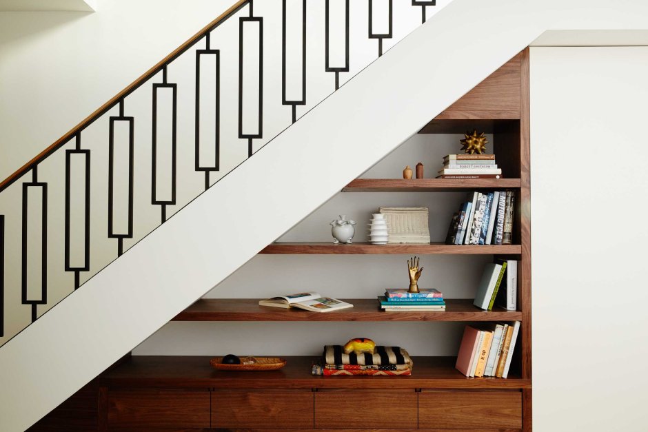 Полки под лестницей в частном доме