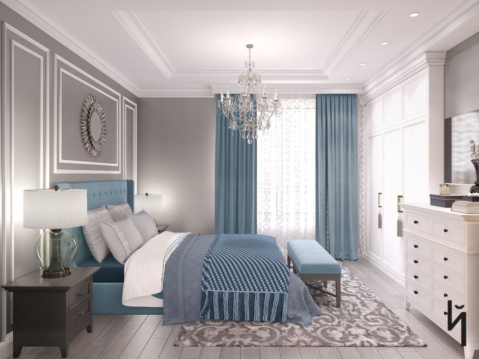 Спальня в серо синих тонах