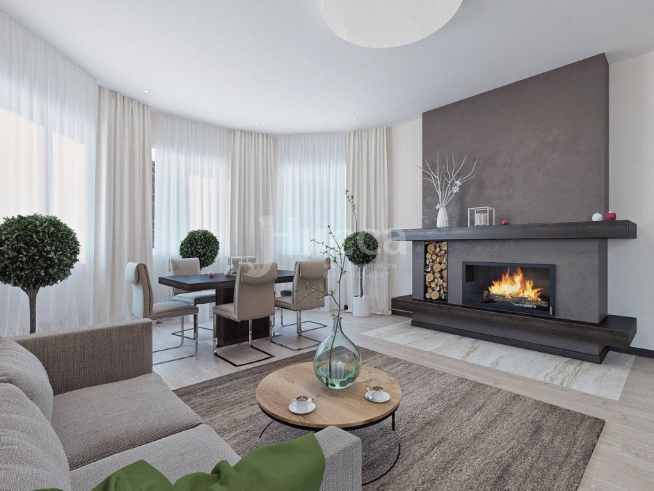 Гостиные с камином в современном стиле