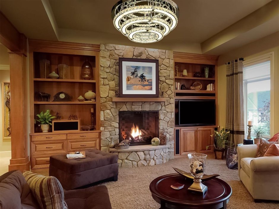Гостиная с угловым камином