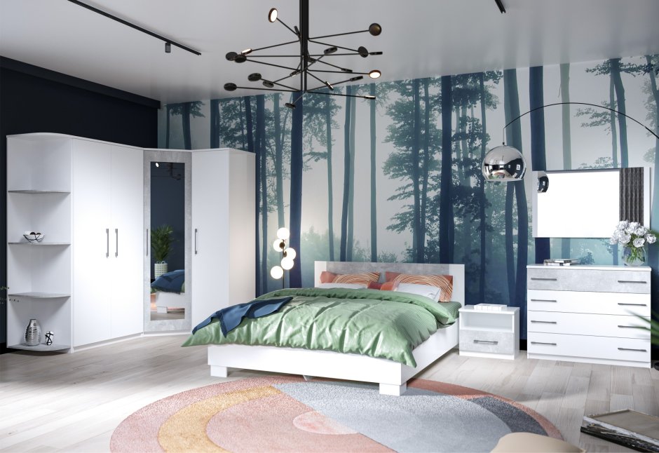 Сочетание нежных оттенков и приятных текстур в спальне "Аврора" создает атмосферу релаксации и умиротворения. Этот дизайн подходит для тех, кто ценит элегантность и стиль в своем интерьере.