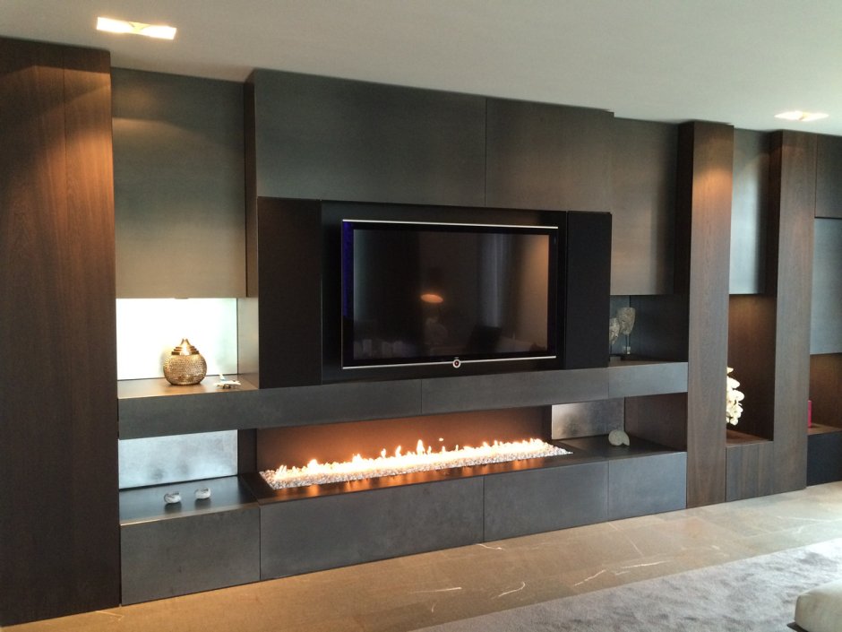Стенка со встроенным камином