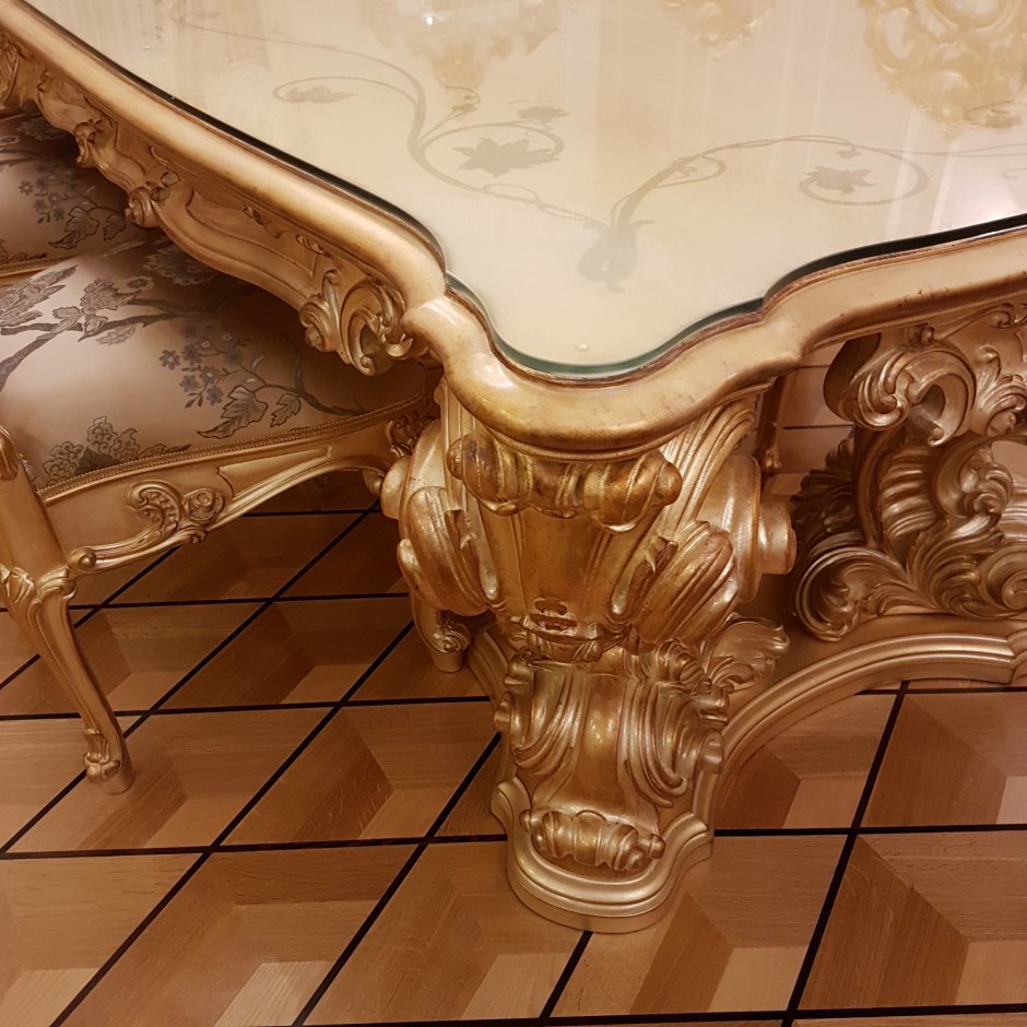 Представьте себе изысканный стол в стиле барокко, который приковывает взгляд своей роскошью и элегантностью. Этот уникальный предмет мебели является идеальным дополнением для интерьера любого помещения.