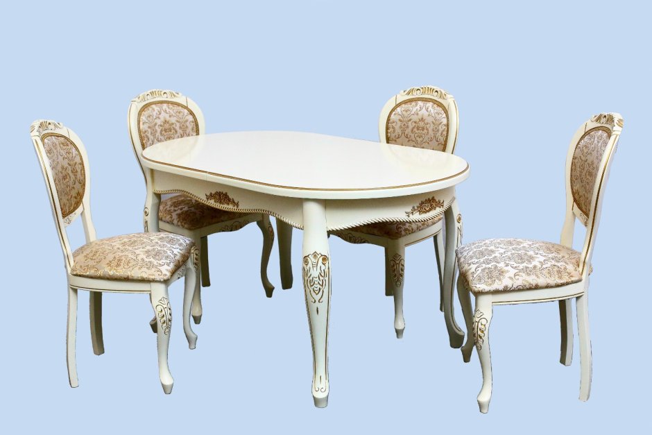 Главной особенностью этого стола является его изящная форма. Криволинейные линии и плавные изгибы создают ощущение движения и грации. Величественные ножки, украшенные красивыми резными элементами, придают столу просто неотразимый вид.